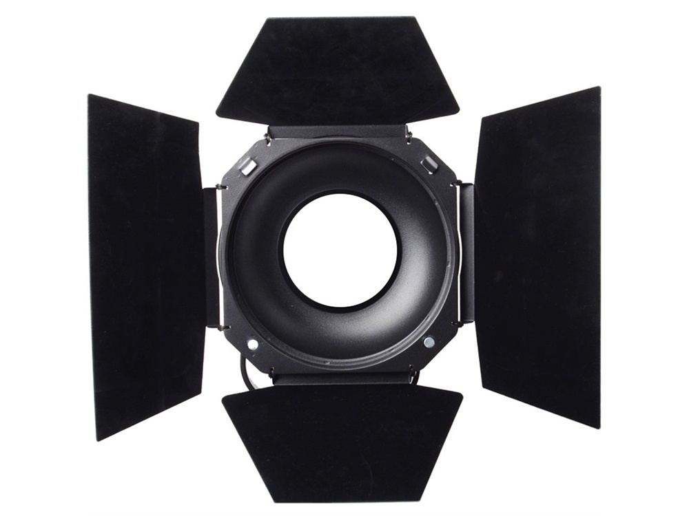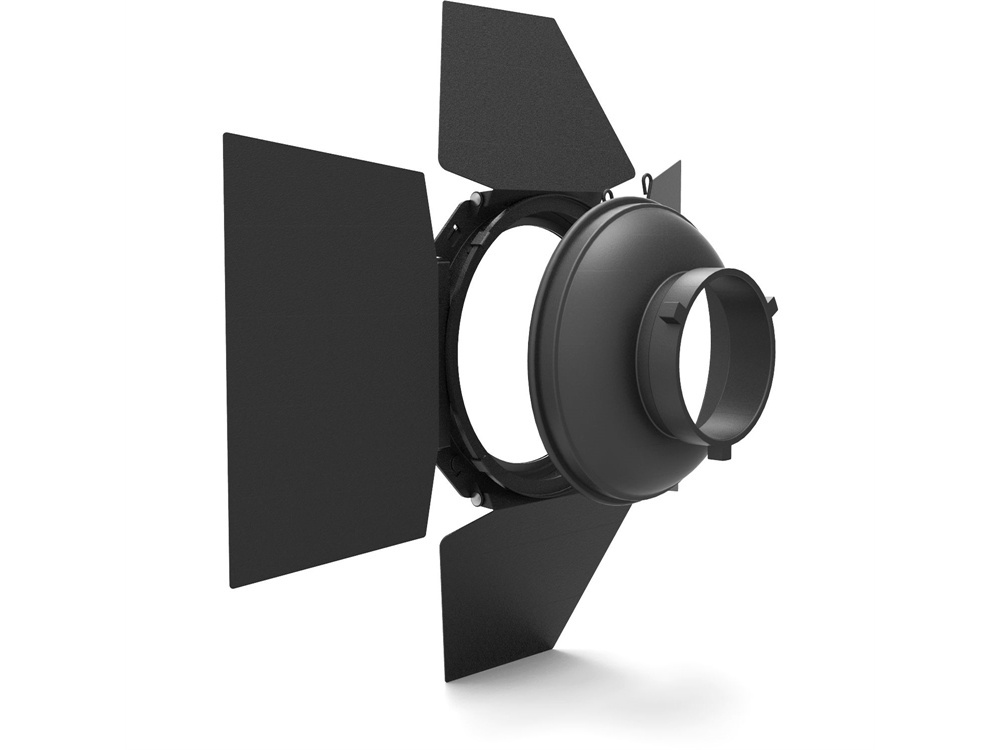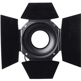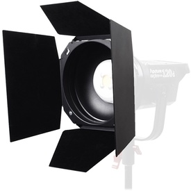 The Barndoors, Grid, and Gel Holder for LS 120d/II and LS 300d/II LED Lights are light modifiers that fit the reflector that comes with all versions of these Aputure LED lights. The 4-way barndoor design allows for one to four of the leaves to be swung into the light's beam to illuminate areas that you want while keeping light from areas where you don't want it. The 30-degree grid narrows the beam spread. The barndoors also include a magnetic gel holder that allows filmmakers to easily add colour to their lights' output.